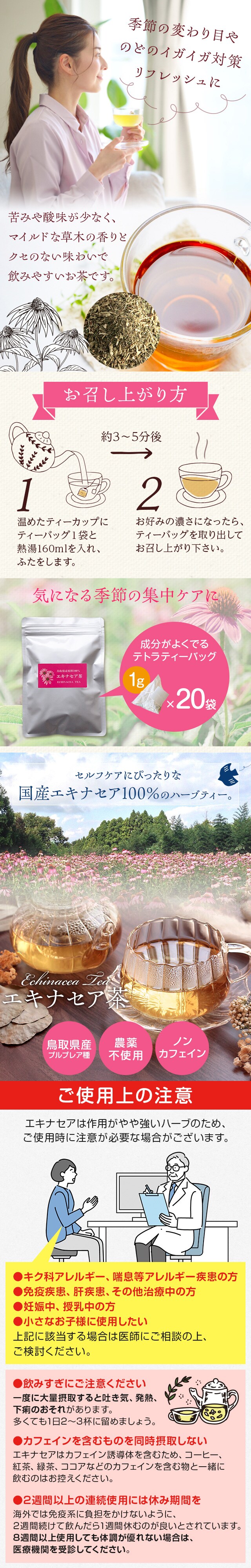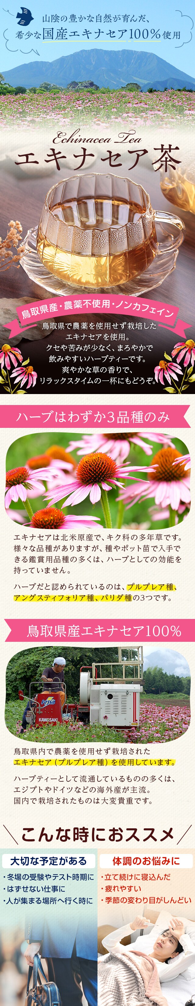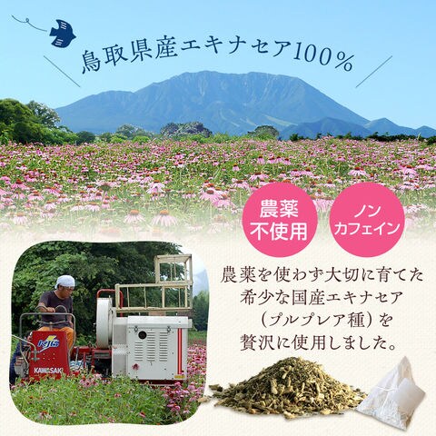 エキナセア茶 20袋入 鳥取県産原料100% エキナセア(プルプレア種)使用 農薬不使用 ティーバッグ 国産 無添加 健康茶 ハーブティー 送料無料 ネコポス(他商品との同梱不可)