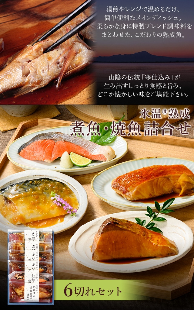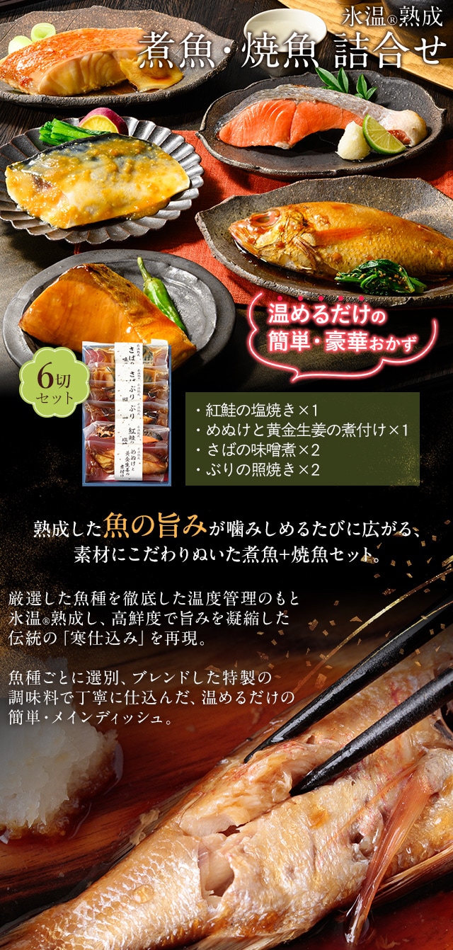 母の日 氷温熟成 煮魚・焼き魚 詰合せ(紅鮭の塩焼き・さばの味噌煮ほか6切入) 個包装 ギフト 送料無料(北海道・沖縄を除く)