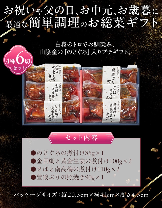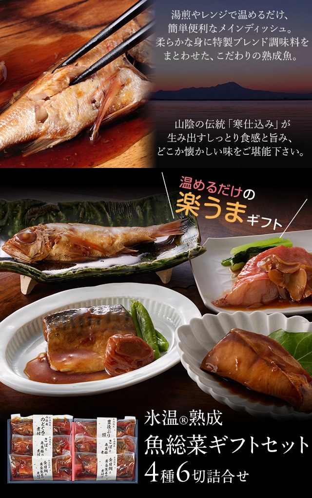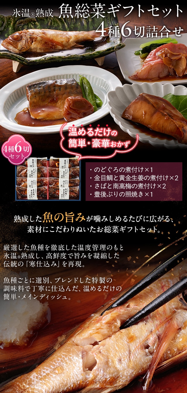お歳暮 ギフト 氷温熟成 こだわりの魚総菜4種詰合せ(のどぐろの煮付け・金目鯛の煮付けほか6切入) 冷凍 真空パック 個包装 海鮮 魚 ギフト プレゼント 送料無料(北海道・沖縄を除く)
