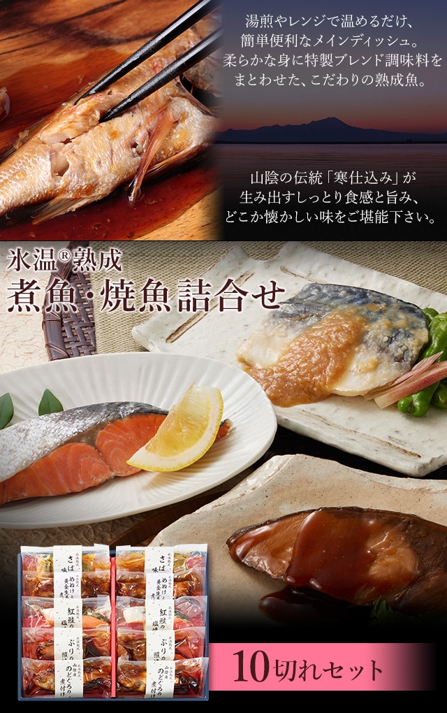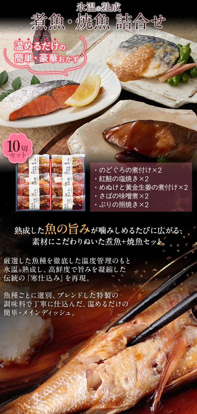 お歳暮 ギフト 氷温熟成 煮魚・焼き魚 詰合せ(のどぐろの煮付け・紅鮭の塩焼きほか10切入) 個包装 ギフト 送料無料(北海道・沖縄を除く)