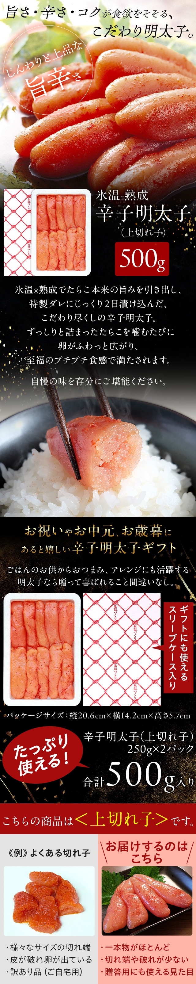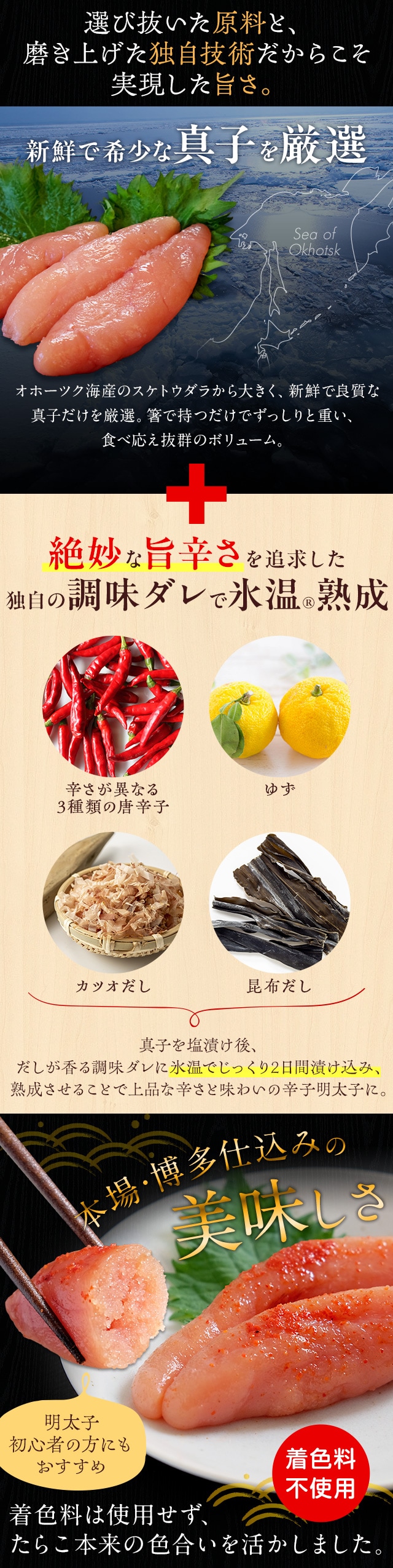 お歳暮 ギフト 氷温熟成 辛子明太子(上切れ子) 無色 惣菜 冷凍 海鮮 ギフト プレゼント 送料無料(北海道・沖縄を除く)