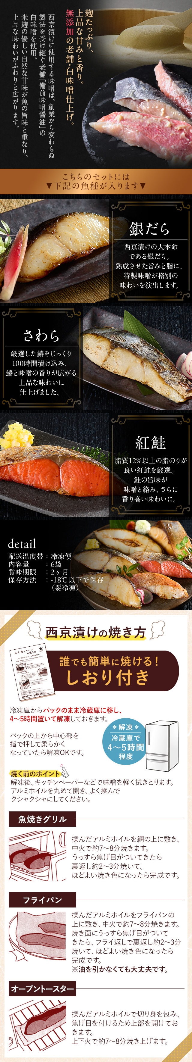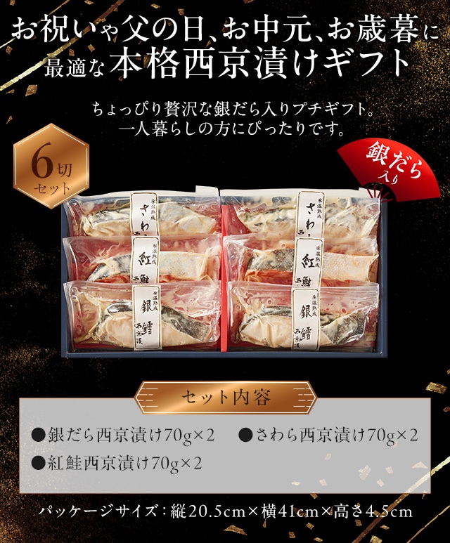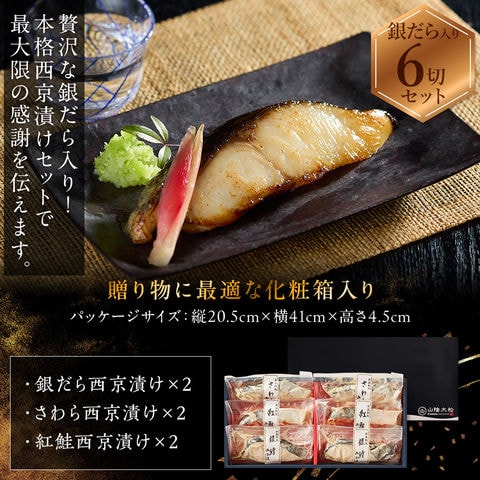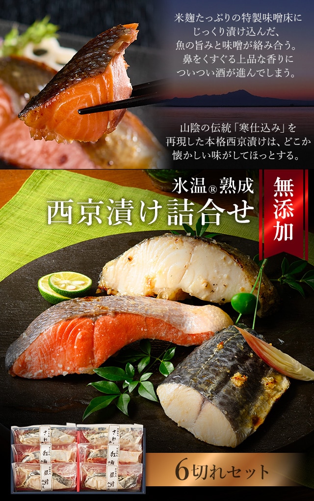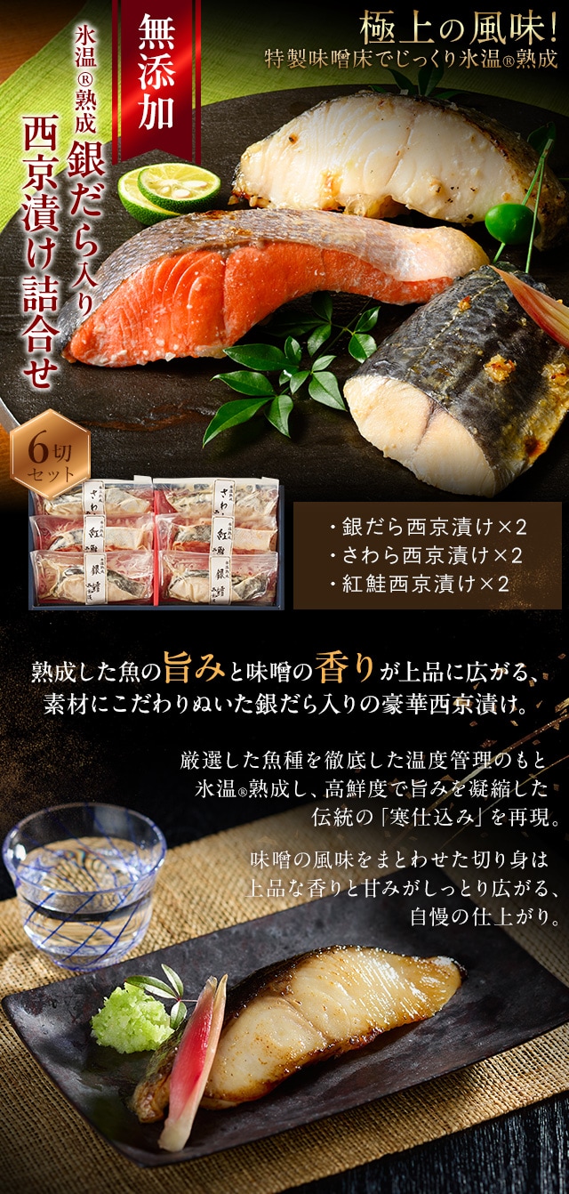 お歳暮 ギフト 銀だら入り 西京漬け 詰合せ(銀だら・さわらほか6切入) 氷温熟成 無添加 漬け魚 個包包装 海鮮 魚 ギフト 送料無料(北海道・沖縄を除く)