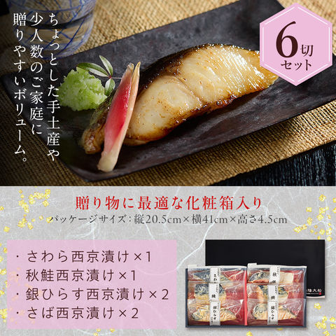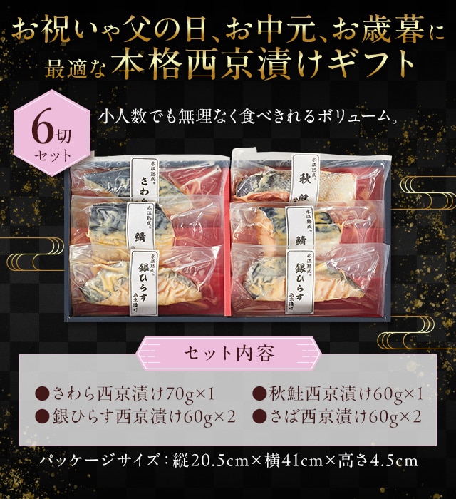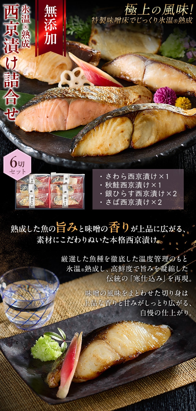 お歳暮 ギフト 西京漬け 詰合せ(さわら・秋鮭ほか6切入) 氷温熟成 無添加 漬け魚 個包装 ギフト 送料無料(北海道・沖縄を除く)