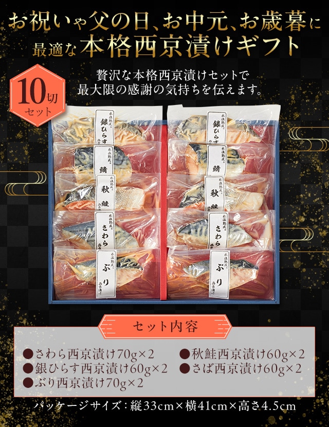お歳暮 ギフト 西京漬け 詰合せ(さわら・ぶりほか10切入) 氷温熟成 無添加 漬け魚 個包装 ギフト 送料無料(北海道・沖縄を除く)