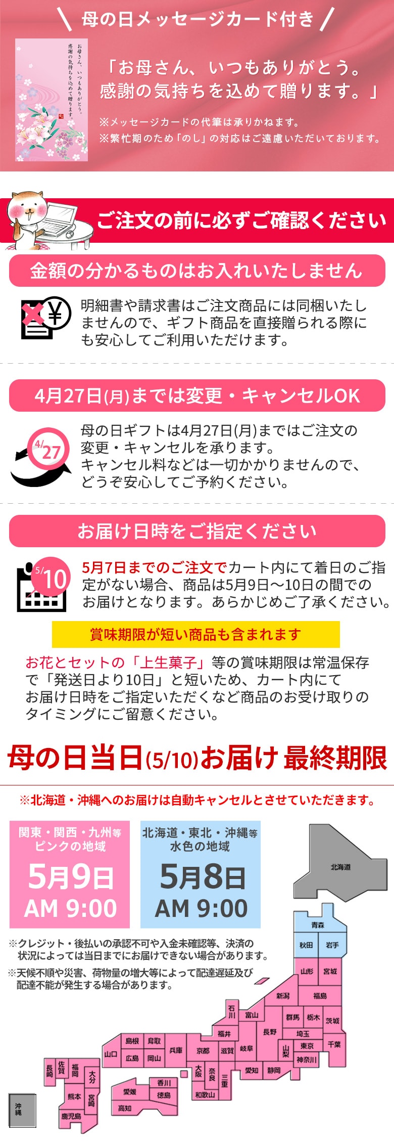 - 5月5日以降の着日指定可(お届け日指定がない場合は母の日当日か前日着)