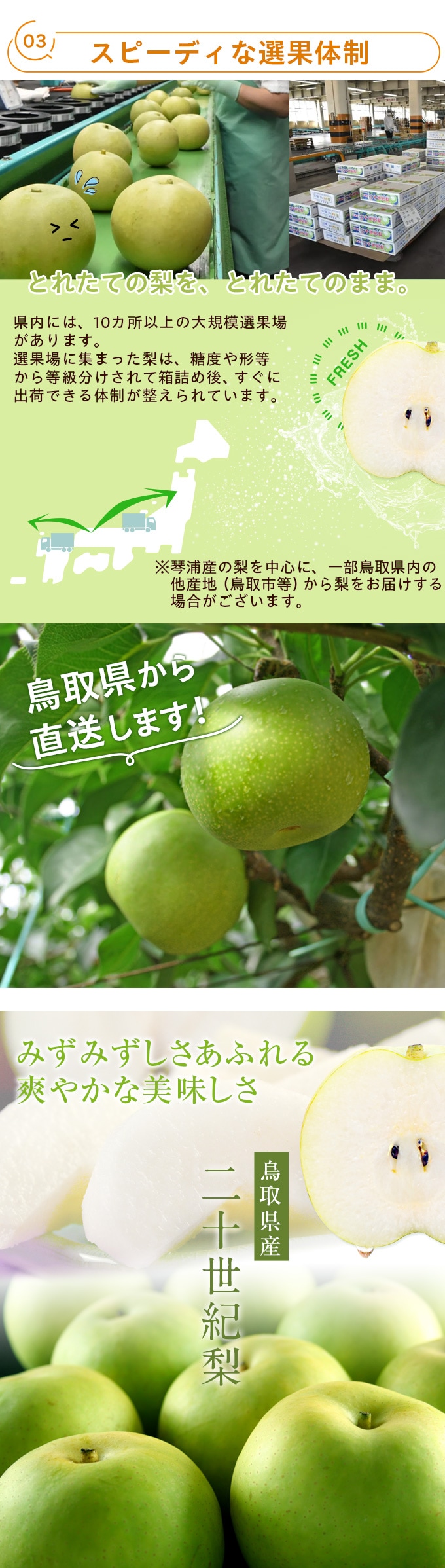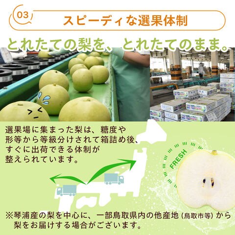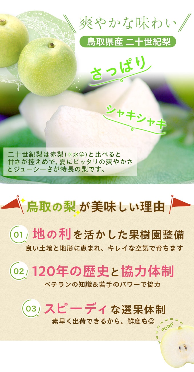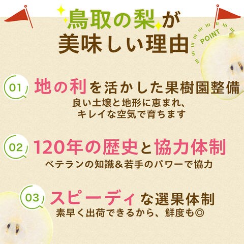 | ジューシーでシャリシャリ感たっぷり!本場・鳥取県産の二十世紀梨を産地直送。当商品はご自宅用となります。 |