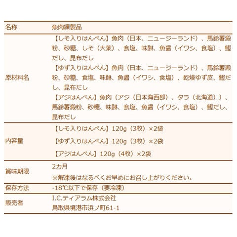 内容量 【しそ入りはんぺん】120g(3枚)×2袋