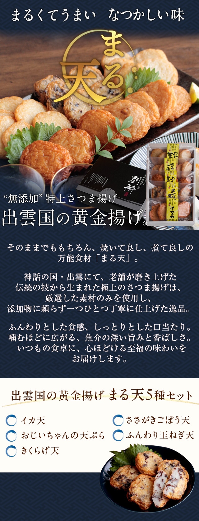 お歳暮 ギフト 【無添加】特上さつま揚げ「出雲国の黄金揚げ まる天」5種詰合せ(イカ天・玉ねぎ天ほか) おつまみ セット 薩摩揚げ 揚げかまぼこ 天ぷら ギフト 送料無料(北海道・沖縄を除く)