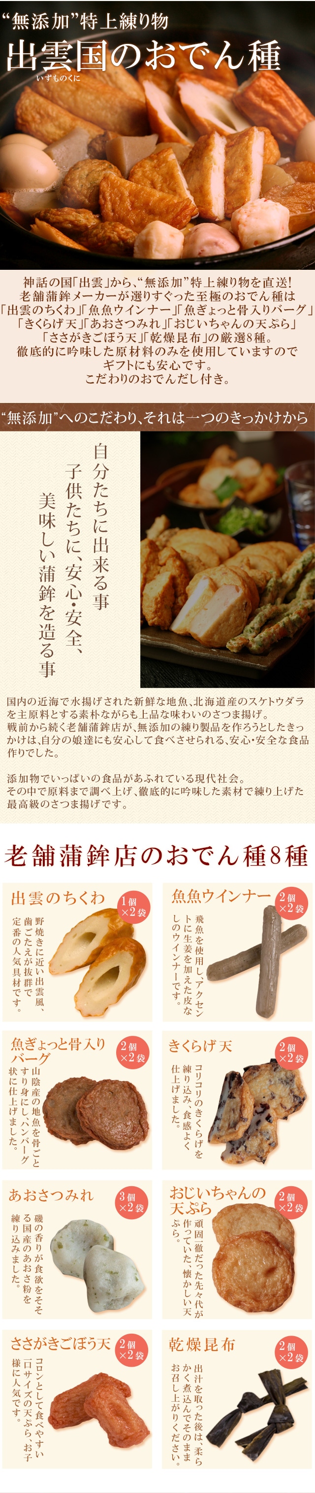 “無添加”特上練り物「出雲国のおでん種」8種×2袋入り(だし付き) 送料無料(北海道・沖縄を除く)