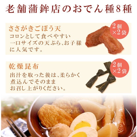 | 内容量 | 具材286g(8種16個)、液体濃縮だし30g、だしパック6g |