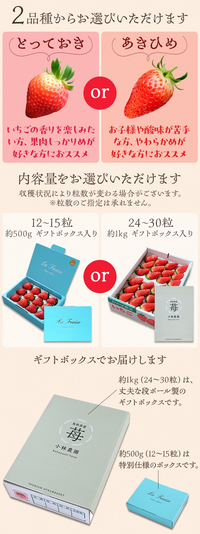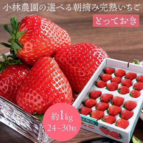 小林農園の選べる朝摘み完熟いちご 約1kg(24~30粒) 鳥取県オリジナル新品種「とっておき」 大粒 化学肥料不使用 減農薬 イチゴ 苺 高級 ギフト プレゼント 送料無料(北海道・沖縄を除く)