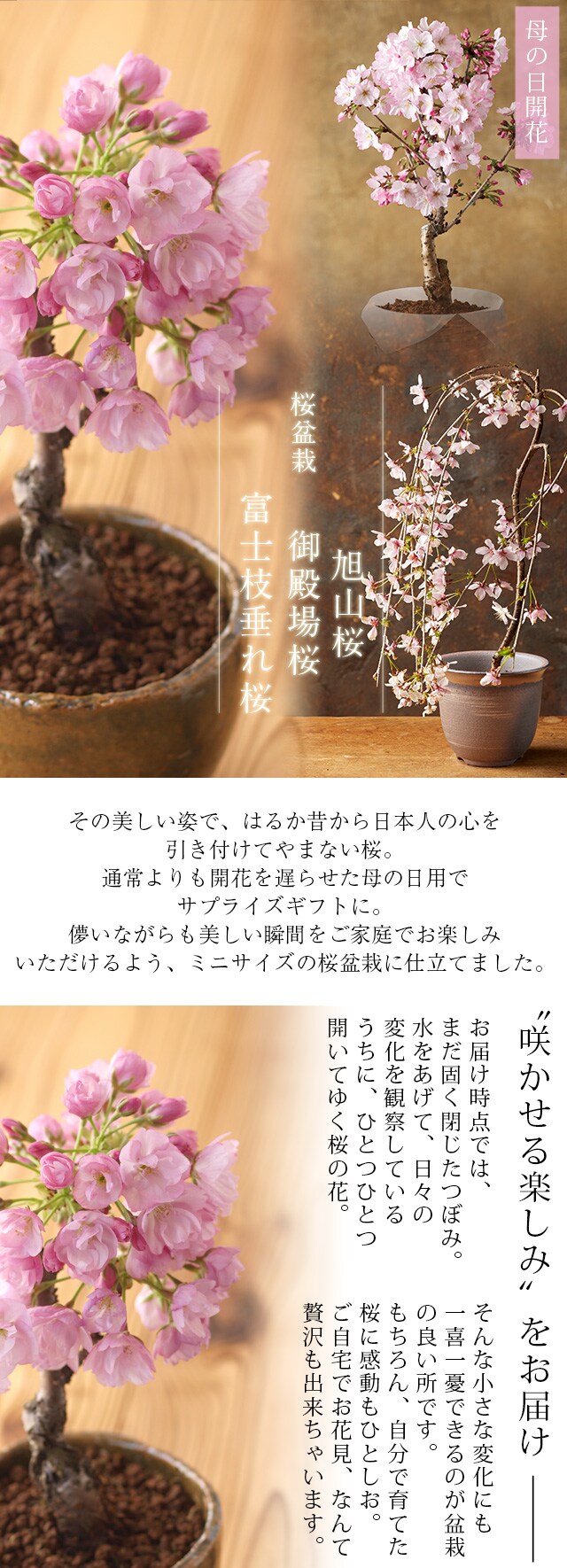 母の日 プレゼント ギフト 花 桜盆栽(旭山) 送料無料 さくら盆栽 (北海道・沖縄を除く) 母の日メッセージカード付き
