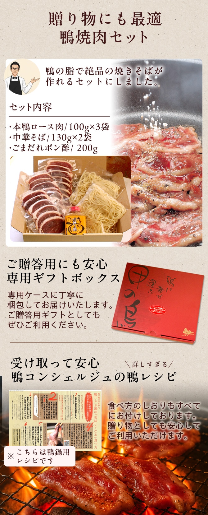 お歳暮 ギフト 本鴨焼肉セット2人前(焼きそば付き) ギフト 送料無料(北海道・沖縄を除く)