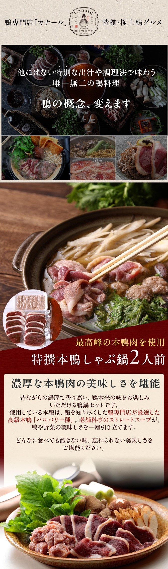 特選本鴨しゃぶ鍋2人前(鴨つみれ・スープ付き) 鴨鍋 鴨鍋セット 鴨肉 ギフト 送料無料(北海道・沖縄を除く)