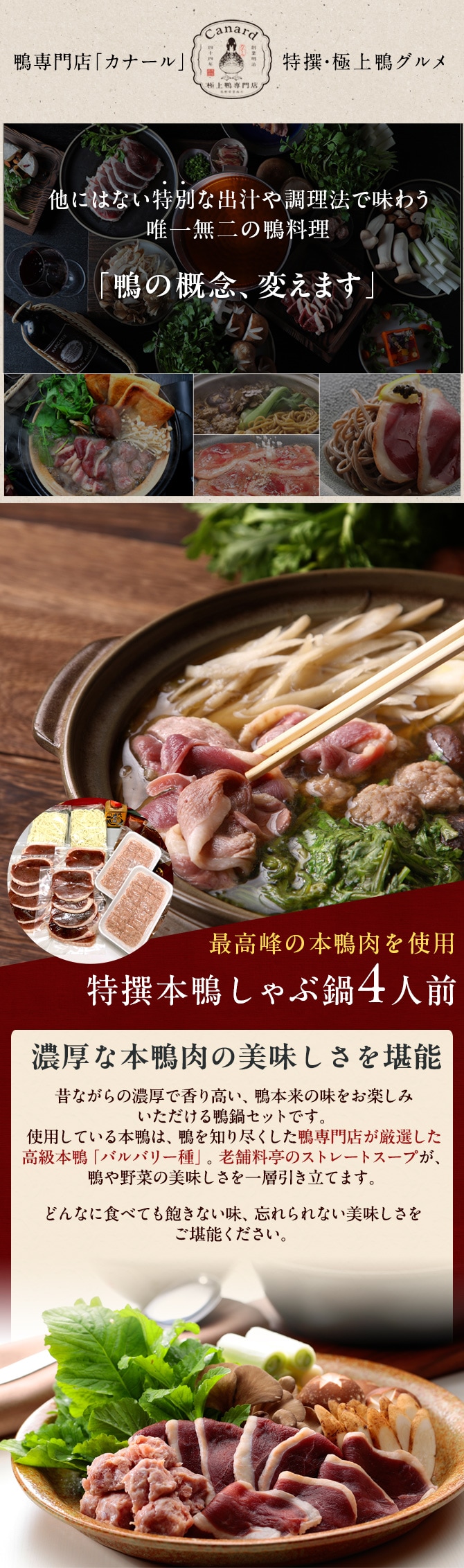 お歳暮 ギフト 特選本鴨しゃぶ鍋4人前(鴨つみれ・ラーメン付き) 鴨鍋 鴨鍋セット 鴨肉 ギフト 送料無料(北海道・沖縄を除く)