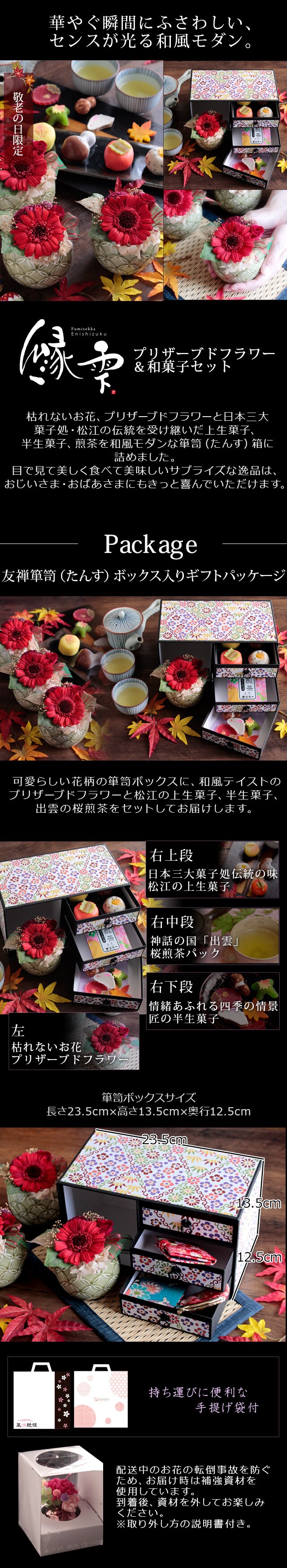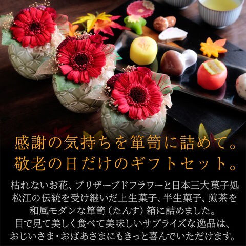 敬老の日 ギフト プレゼント 花 2025 お菓子 スイーツ プリザーブドフラワー&和菓子セット「縁雫(えにしずく)」 箪笥箱入り 送料無料(北海道・沖縄を除く) 敬老の日メッセージカード付き