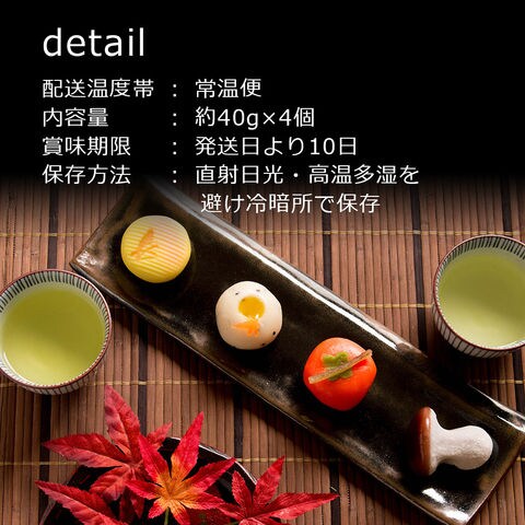 | 内容量 | 【上生菓子】約40g×4個 【半生菓子】約15g×5個 【桜煎茶】2g×2袋 |