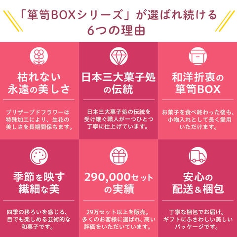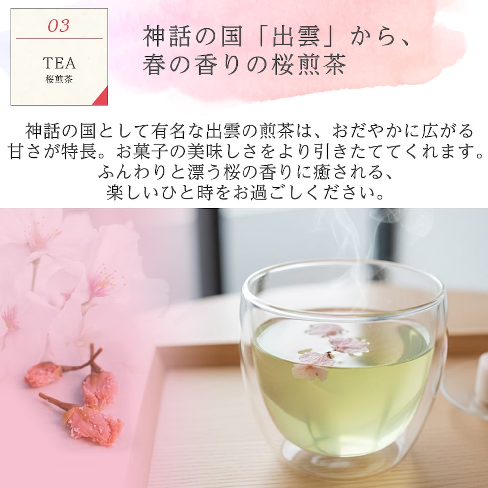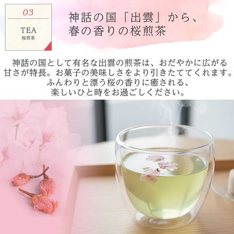 | 保存方法 | 【上生菓子】直射日光・高温多湿を避け冷暗所で保存 【桜煎茶】高温多湿を避け移り香に注意して保存 |