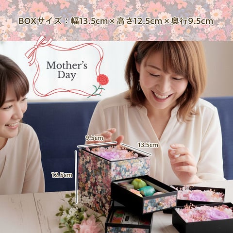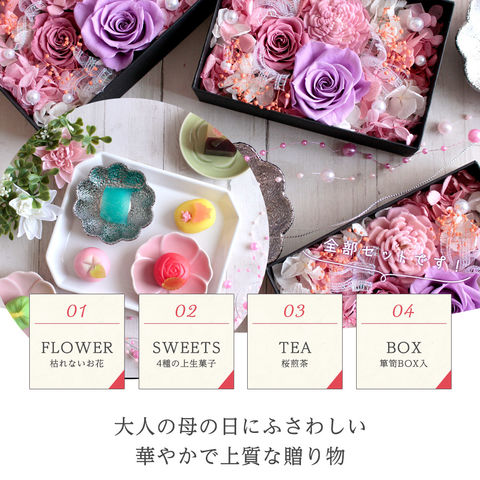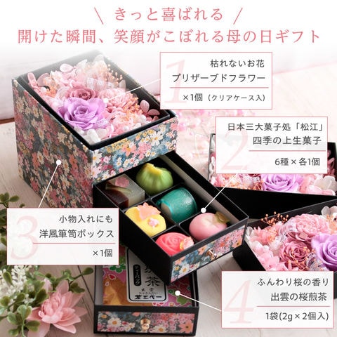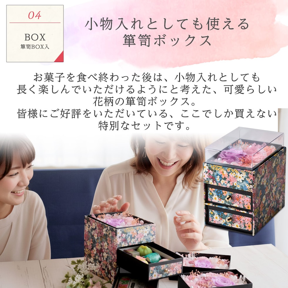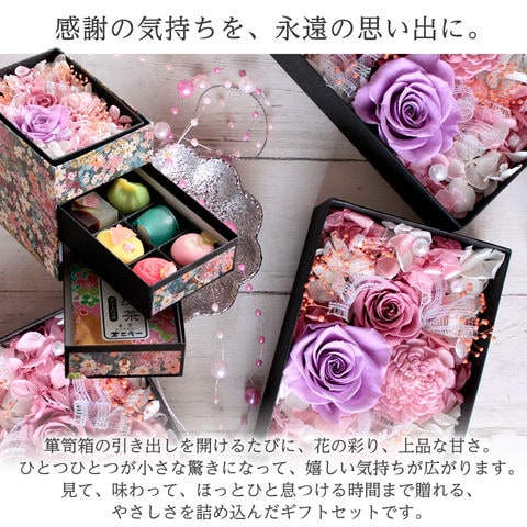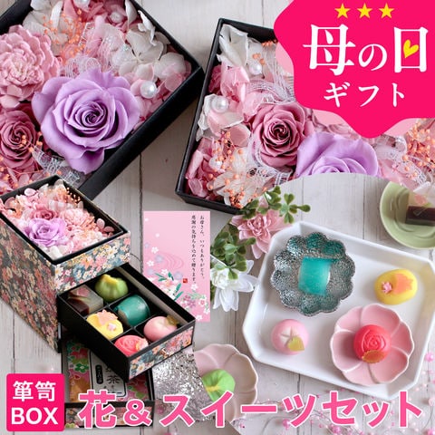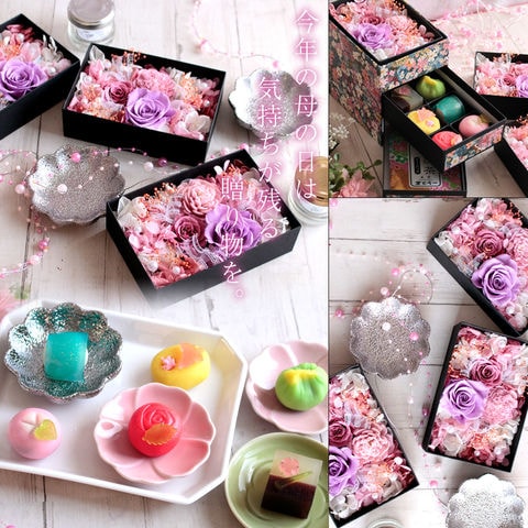 母の日 プレゼント ギフト 花 スイーツ 和菓子 プリザーブドフラワー&ひとくち上生菓子セット「麗日(れいじつ)」 クリア箪笥箱入り 送料無料(北海道・沖縄を除く) 母の日メッセージカード付き