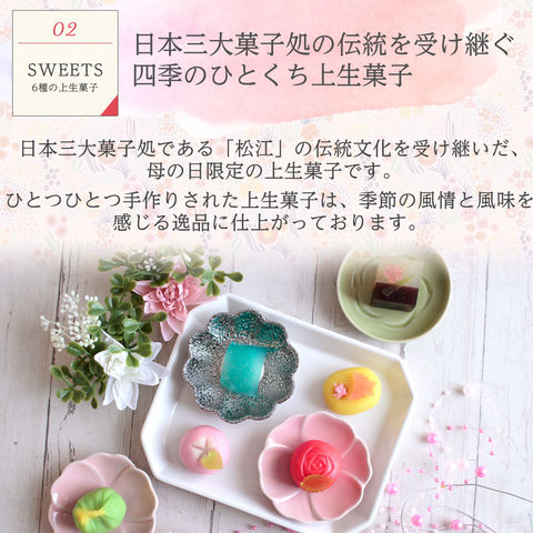 | 内容量 | 【上生菓子】約20g×6個 【桜煎茶】2g×2袋 |
