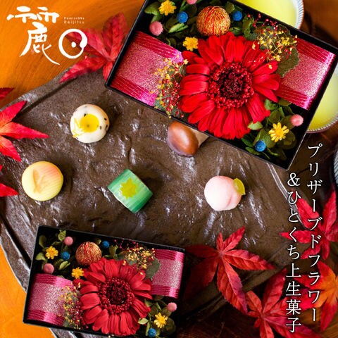 敬老の日 ギフト プレゼント 花 2025 和菓子 お菓子 スイーツ プリザーブドフラワー&ひとくち上生菓子セット「麗日(れいじつ)」 クリア箪笥箱入り 送料無料(北海道・沖縄を除く) 敬老の日メッセージカード付き