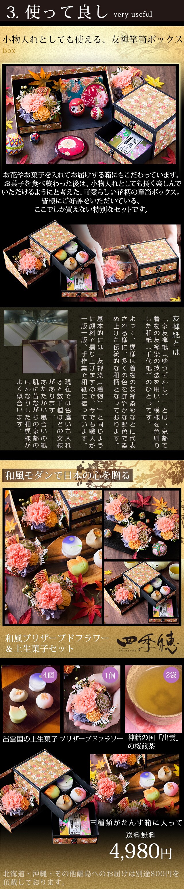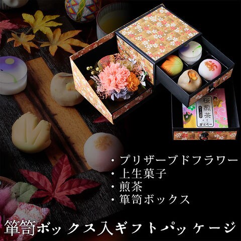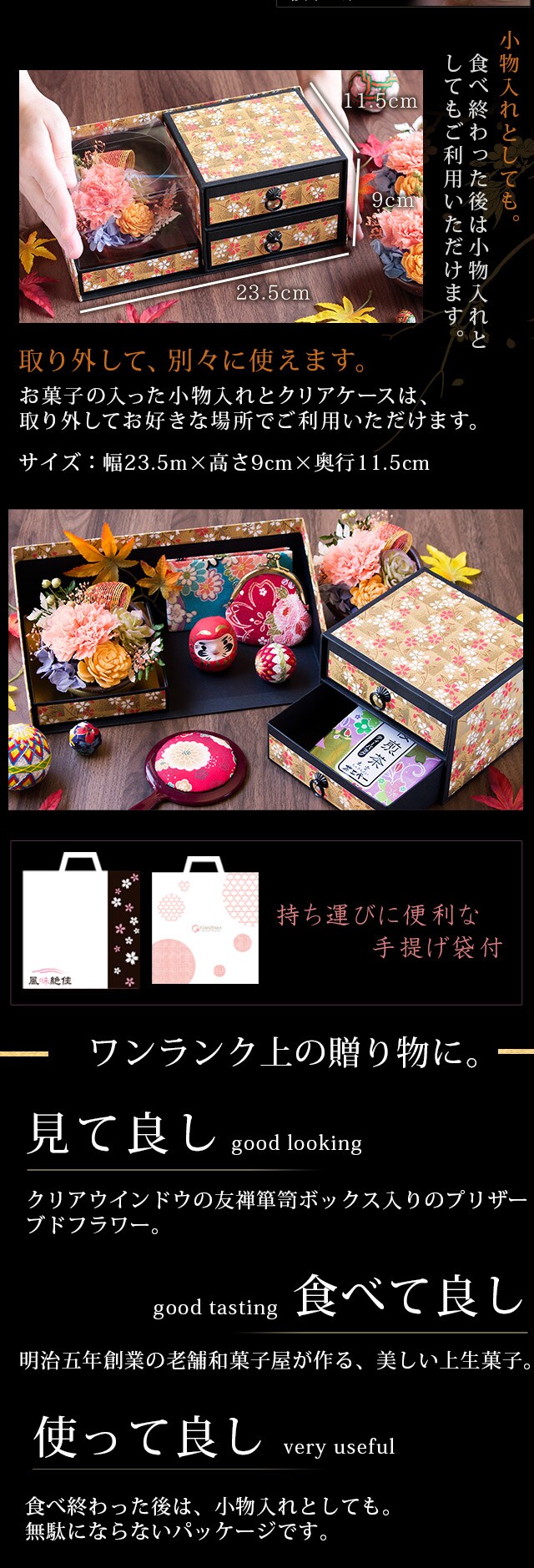 敬老の日 ギフト プレゼント 花 2025 和菓子 お菓子 スイーツ プリザーブドフラワー&上生菓子セット「四季穂(しきほのか)」 クリア箪笥箱入り 送料無料(北海道・沖縄を除く) 敬老の日メッセージカード付き