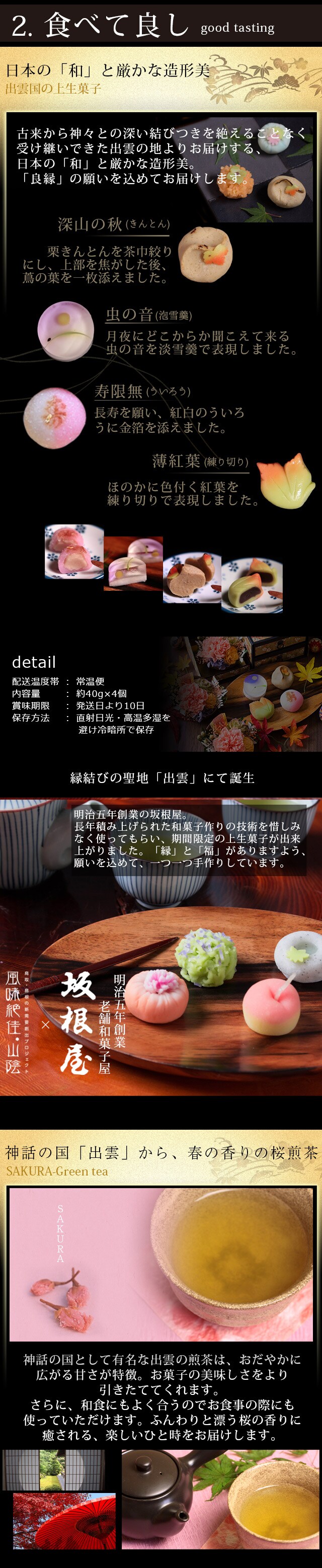 | 内容量 | 【上生菓子】約40g×4個 【桜煎茶】2g×2袋 |