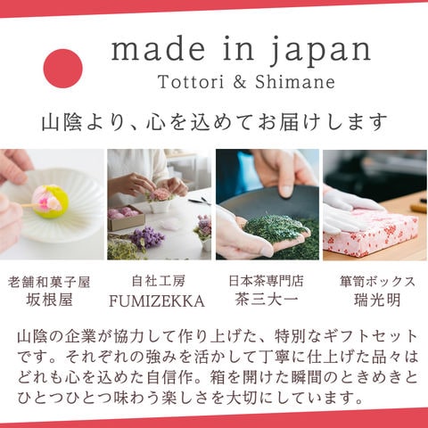 | 保存方法 | 【上生菓子】直射日光・高温多湿を避け冷暗所で保存 【桜煎茶】高温多湿を避け移り香に注意して保存 |