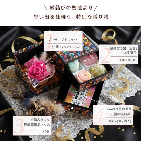 母の日 プレゼント ギフト 花 スイーツ 和菓子 プリザーブドフラワー&上生菓子セット「四季穂(しきほのか)」 クリア箪笥箱入り 送料無料(北海道・沖縄を除く) 母の日メッセージカード付き