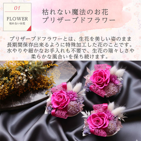 | 花材 | バラ、アジサイ、かすみ草、シルバーデージー、ラスカス、ソーラーシフォンカーネーション、ハニーテール、リボン、器 |
