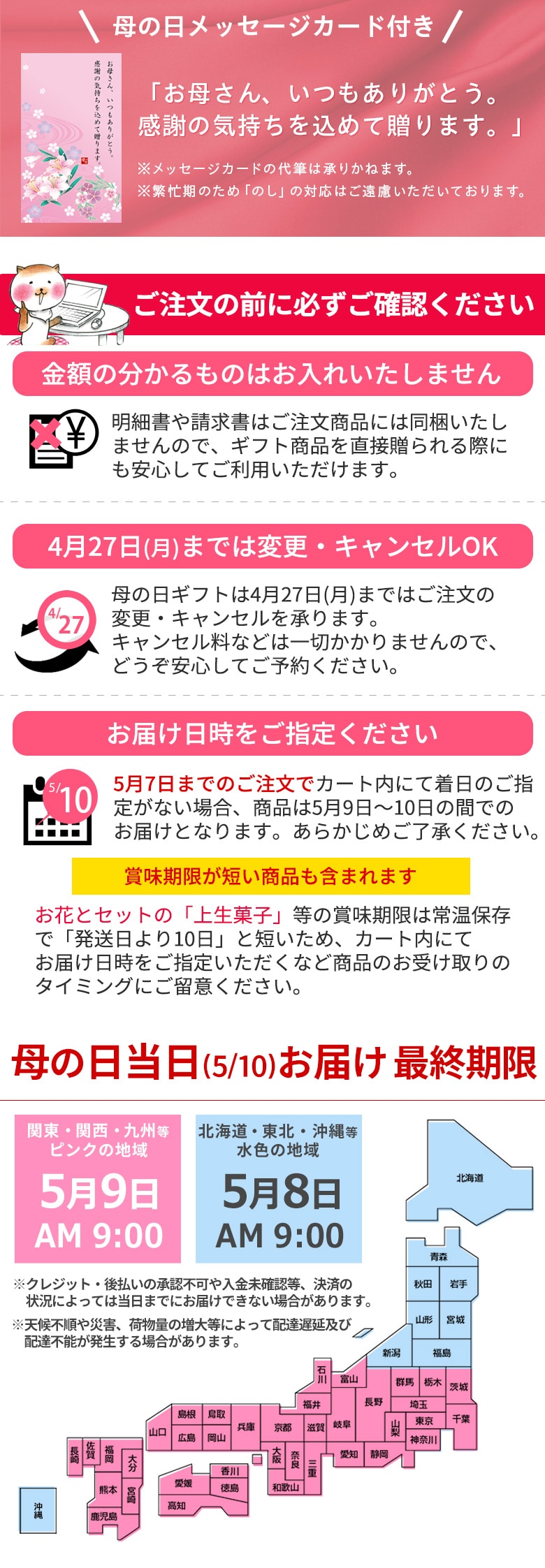 - 5月5日以降の着日指定可(お届け日指定がない場合は母の日当日か前日着)