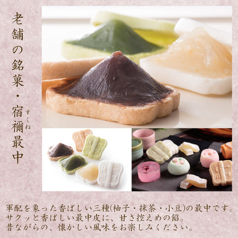 【上生菓子】約40g×4個 【宿禰餅】約20g×4個 【宿禰最中】約20g×3個 【おしるこ】約50g×4個 |