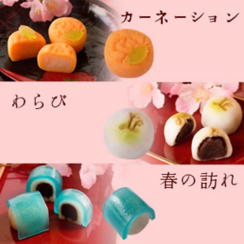 【川辺の春】エネルギー271kcal/たんぱく質5.8g/脂質0.5g/炭水化物64.1g/食塩相当量0.06g(100g当たり) 【なでしこ】エネルギー270kcal/たんぱく質4.0g/脂質0.3g/炭水化物64.0g/食塩相当量0.01g(100g当たり) 【菜の花畑】エネルギー272kcal/たんぱく質5.8g/脂質0.5g/炭水化物64.1g/食塩相当量0.06g(100g当たり) 【蝶々】エネルギー275kcal/たんぱく質5.7g/脂質0.6g/炭水化物65.0g/食塩相当量0.02g(100g当たり) 【ばら】エネルギー274kcal/たんぱく質5.7g/脂質0.6g/炭水化物64.7g/食塩相当量0.02g(100g当たり) 【母に寄せて】エネルギー271kcal/たんぱく質5.8g/脂質0.6g/炭水化物64.1g/食塩相当量0.06g(100g当たり) 【カーネーション】エネルギー275kcal/たんぱく質5.7g/脂質0.6g/炭水化物65.0g/食塩相当量0.02g(100g当たり) 【わらび】エネルギー276kcal/たんぱく質4.1g/脂質0.2g/炭水化物64.8g/食塩相当量0.06g(100g当たり) 【春の訪れ】エネルギー284kcal/たんぱく質4.6g/脂質0.4g/炭水化物68.0g/食塩相当量0.06g(100g当たり) |