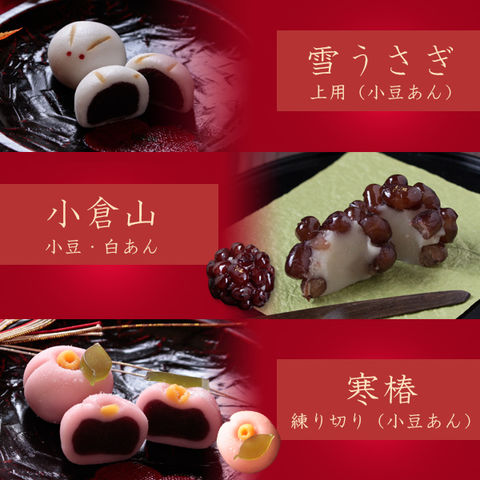 | 栄養成分表示 | 【春めいて】エネルギー289kcal/たんぱく質3.6g/脂質0.3g/炭水化物70.3g/食塩相当量0.02g(100g当たり) 【初夢】エネルギー274kcal/たんぱく質5.9g/脂質0.5g/炭水化物64.6g/食塩相当量0.06g(100g当たり) 【初日の出】エネルギー275kcal/たんぱく質5.7g/脂質0.6g/炭水化物64.9g/食塩相当量0.01g(100g当たり) 【つるし柿】エネルギー293kcal/たんぱく質4.0g/脂質0.3g/炭水化物69.5g/食塩相当量0.02g(100g当たり) 【初霜】エネルギー247kcal/たんぱく質5.5g/脂質0.3g/炭水化物56.0g/食塩相当量0.05g(100g当たり) 【梅のころ】エネルギー294kcal/たんぱく質3.9g/脂質0.3g/炭水化物69.9g/食塩相当量0.03g(100g当たり) 【祝い松】エネルギー281kcal/たんぱく質5.0g/脂質0.4g/炭水化物67.1g/食塩相当量0.05g(100g当たり) 【鈴の音】エネルギー277kcal/たんぱく質5.5g/脂質0.5g/炭水化物65.6g/食塩相当量0.01g(100g当たり) 【水仙】エネルギー274kcal/たんぱく質5.7g/脂質0.5g/炭水化物64.7g/食塩相当量0.06g(100g当たり) 【雪うさぎ】エネルギー274kcal/たんぱく質4.1g/脂質0.2g/炭水化物64.8g/食塩相当量0.06g(100g当たり) 【小倉山】エネルギー334kcal/たんぱく質4.5g/脂質0.5g/炭水化物79.8g/食塩相当量0.01g(100g当たり) 【寒椿】エネルギー274kcal/たんぱく質5.8g/脂質0.5g/炭水化物64.7g/食塩相当量0.06g(100g当たり) |