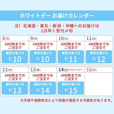 - 2~3日で発送(お届け日指定がない場合は3月10日~13日着)