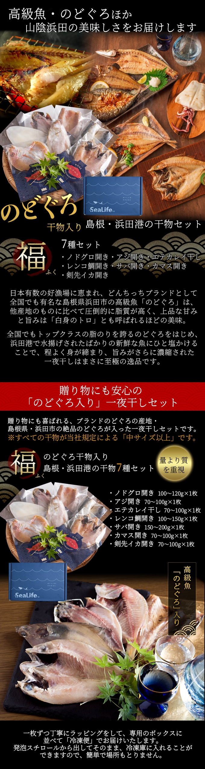 お歳暮 ギフト のどぐろ干物入り 島根・浜田港の干物セット「福」 のどぐろ・エテカレイほか一夜干し7種入 ギフト 送料無料(北海道・沖縄を除く)