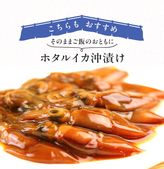 イカ ※本品製造工場でエビ、カニを含む製品を製造しています。 ※本製品で使用しているホタルイカはエビ、カニが混ざる漁法で採取しています。 |
