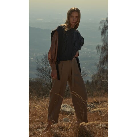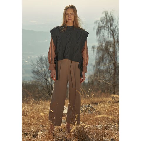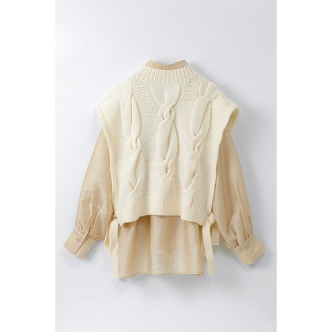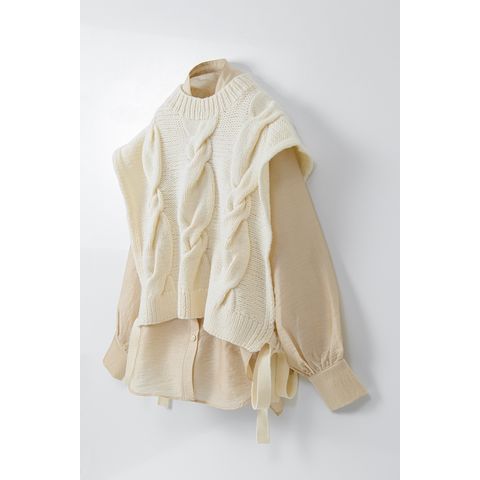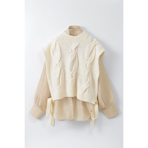 | 商品説明 | 【ニットベスト生地特徴】上質なMerino Wool(メリノウール)100%を使用したケーブルニット。高い保温と伸縮性、適度な吸湿性があり。優れた弾力性があり、膨らみが強い、型崩れしにくいのが特徴。【シャツ生地特徴】セットとなるシャツの生地ははハリながらもしなやか、ナチュラルな見え方に加え、微光沢感もあり、清涼感のあるトレンド素材。【デザイン】しなやかで光沢感のあるボリュームスリーブのフェミニンなブラウスに上質なメリノウールを使用した手編みのケーブルニットをレイヤード。ニットのサイドリボンは結ばず、甘めなブラウスの印象を大人っぽく見せたり結んでさらに女性らしい表情を楽しめる。 |