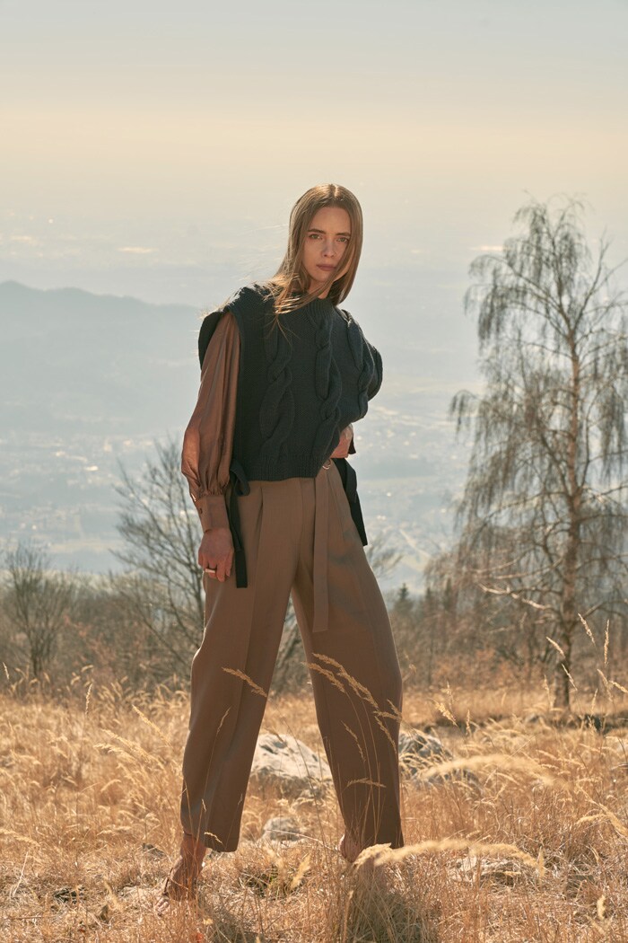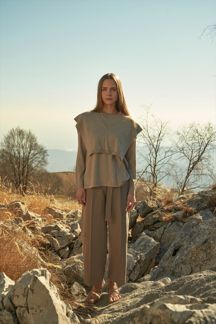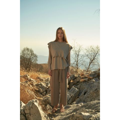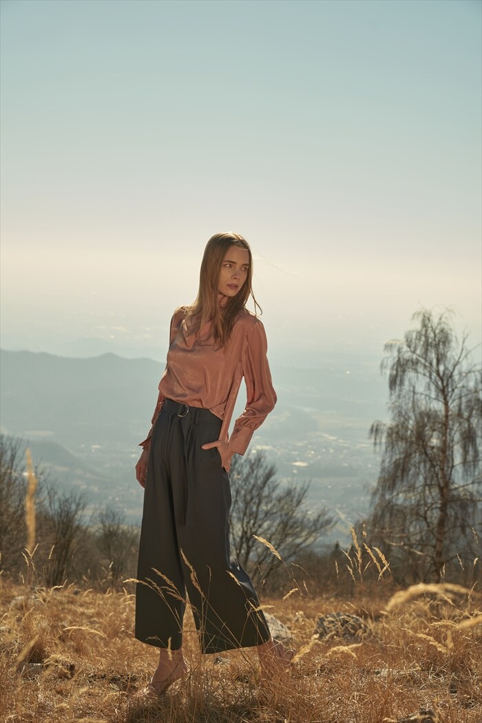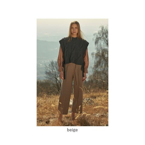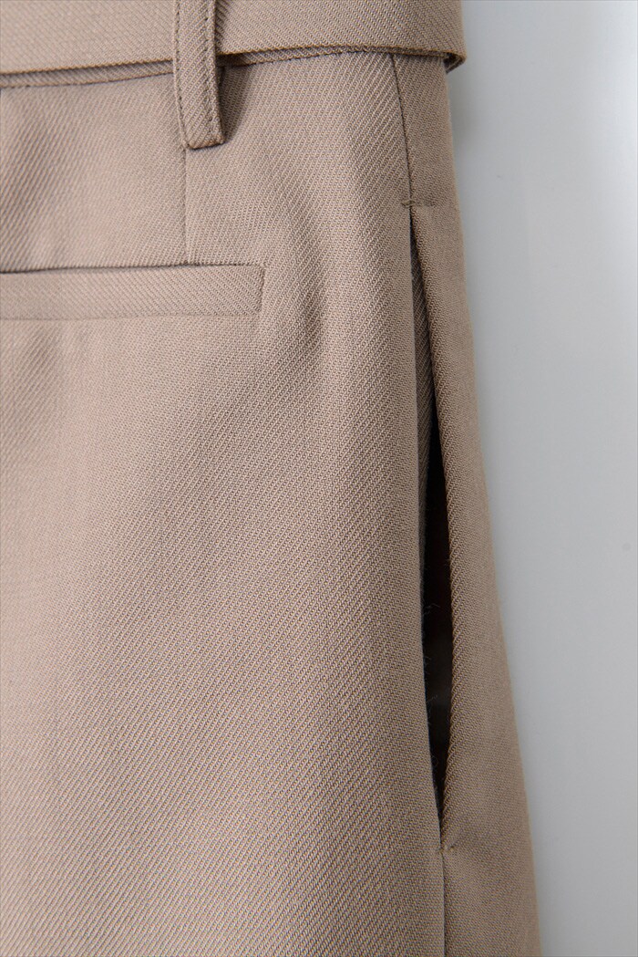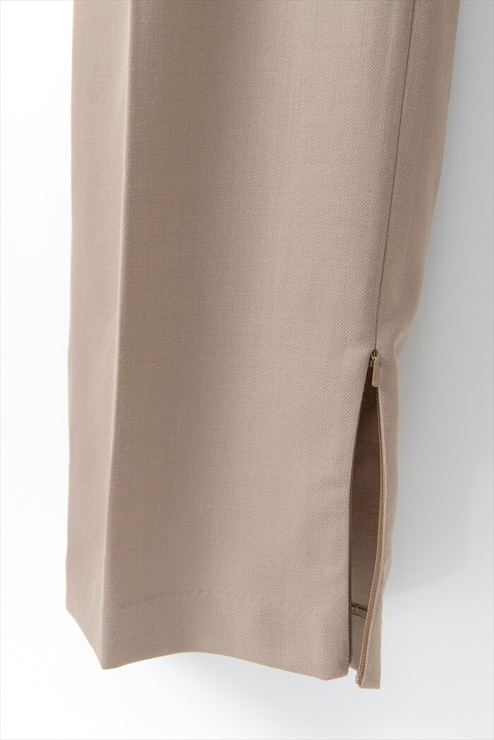 | 商品説明 | 【 生地特徴】通常1本の粗糸を細く伸ばして糸に紡ぐところを、2本の粗糸から1本の糸にする特殊な手法を採用した生地。毛羽の少ない、カジュアルになりすぎず、肉感、ハリ感を備えた生地。【デザイン】ヒップから真っ直ぐに落としたラインが美しいワイドパンツ。裾に付けたジップを開けるとさらにワイドなシルエットが楽しめる。カジュアルな雰囲気に上品さを併せた美脚・脚長効果を持つデザイン。2本の糸を撚って1本の糸から作った生地で、毛羽立ちが少なくハリ感があるのも特徴。 |