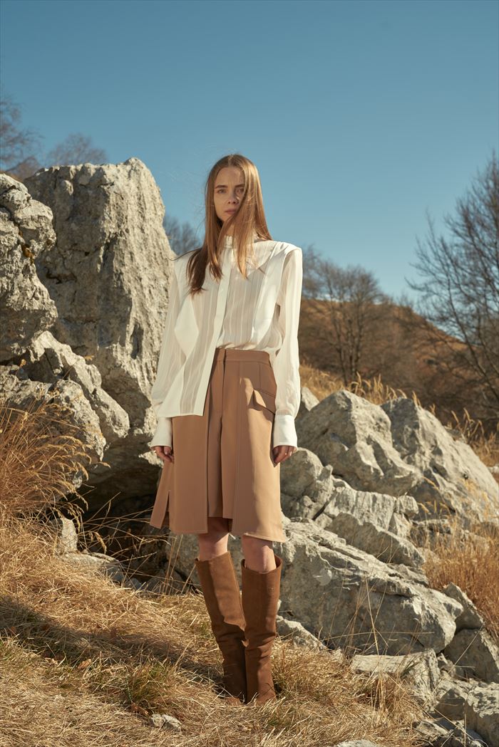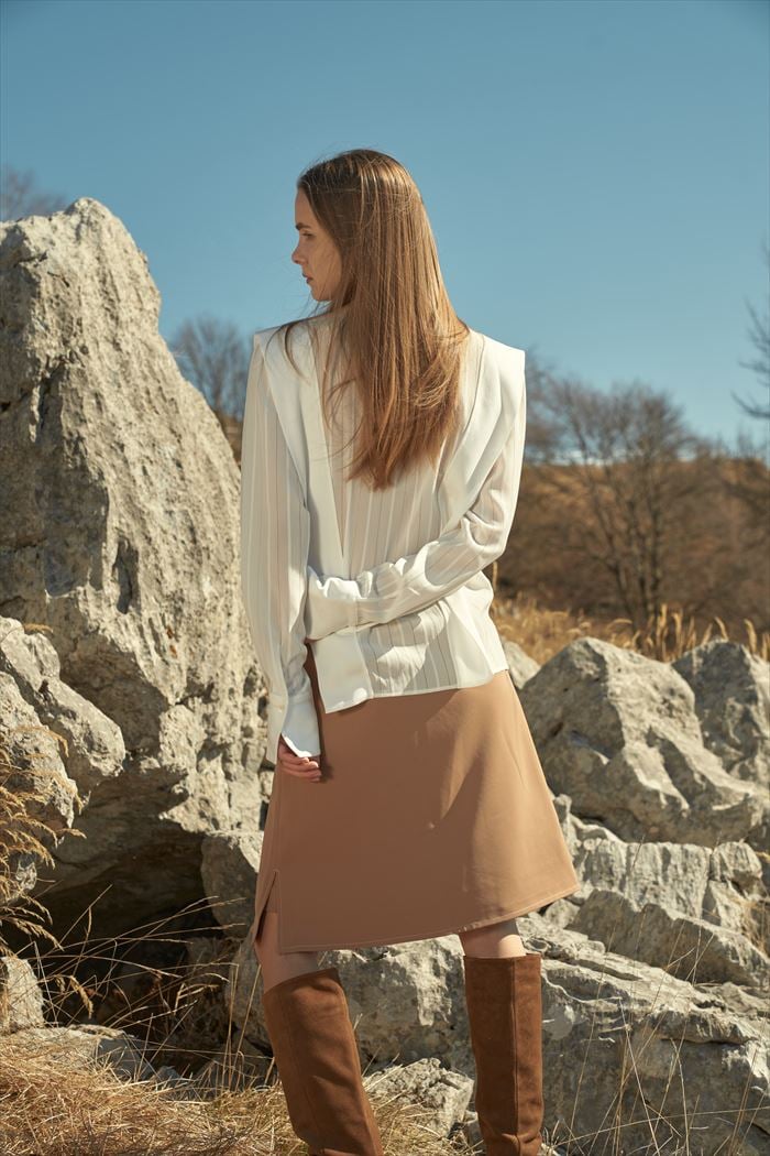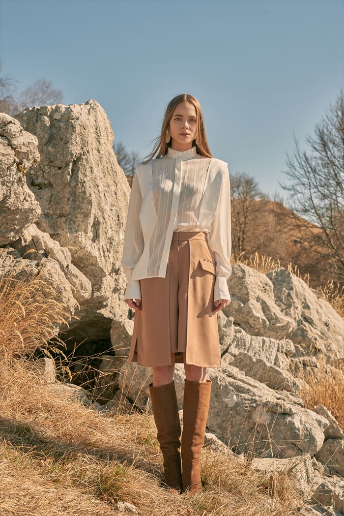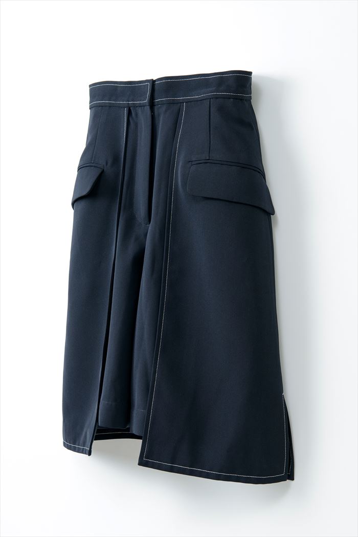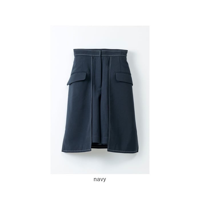 | 商品説明 | ショートパンツにタイトスカートの印象を与えたレイヤードデザイン。高級スーツに使われる綾目の素材を使用し、飾りステッチで仕上げ。膝をすっきり魅せる長めの丈感が上品で落ち着いた印象でシーンを選ばず楽しんでいただける。 |