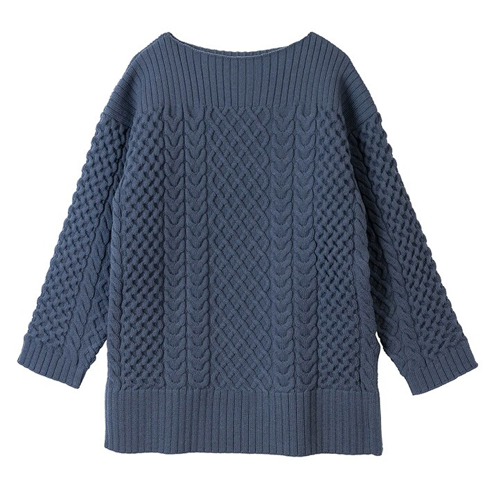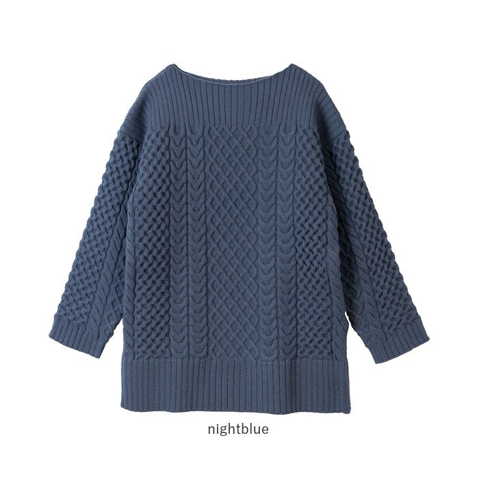 ボードネックケーブルニット【nightblue】