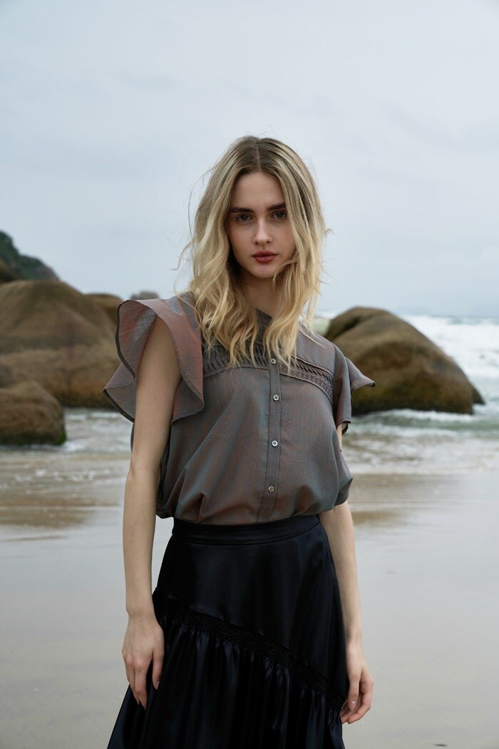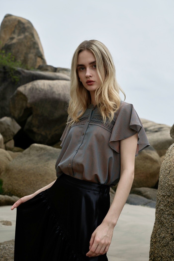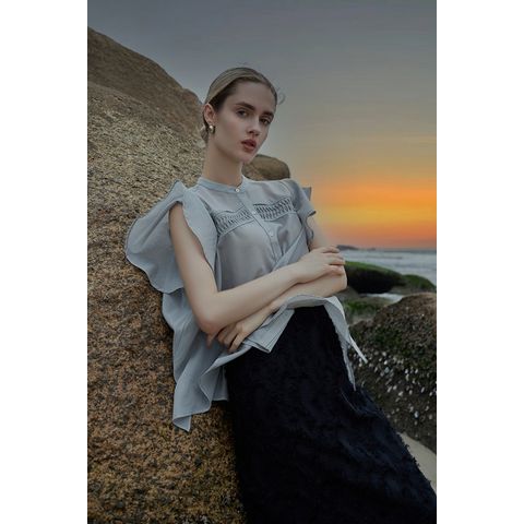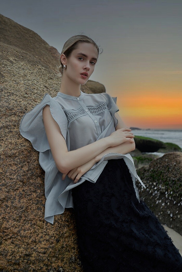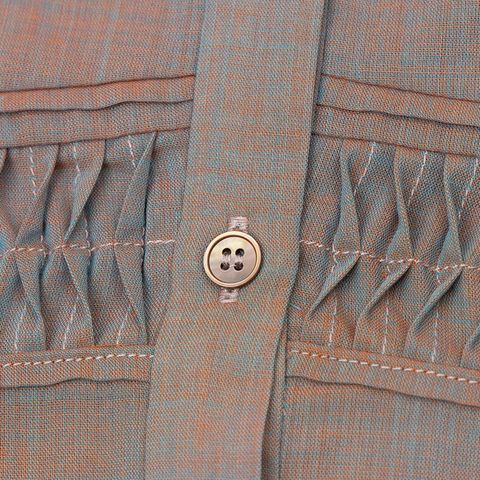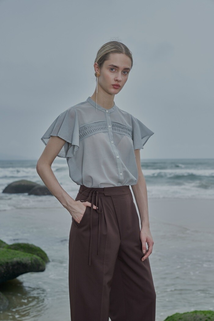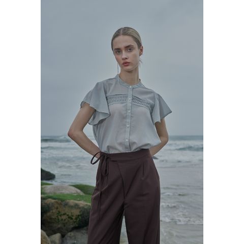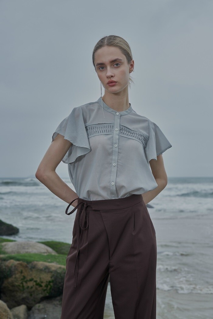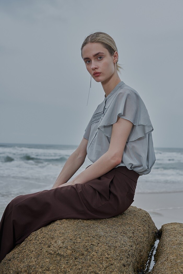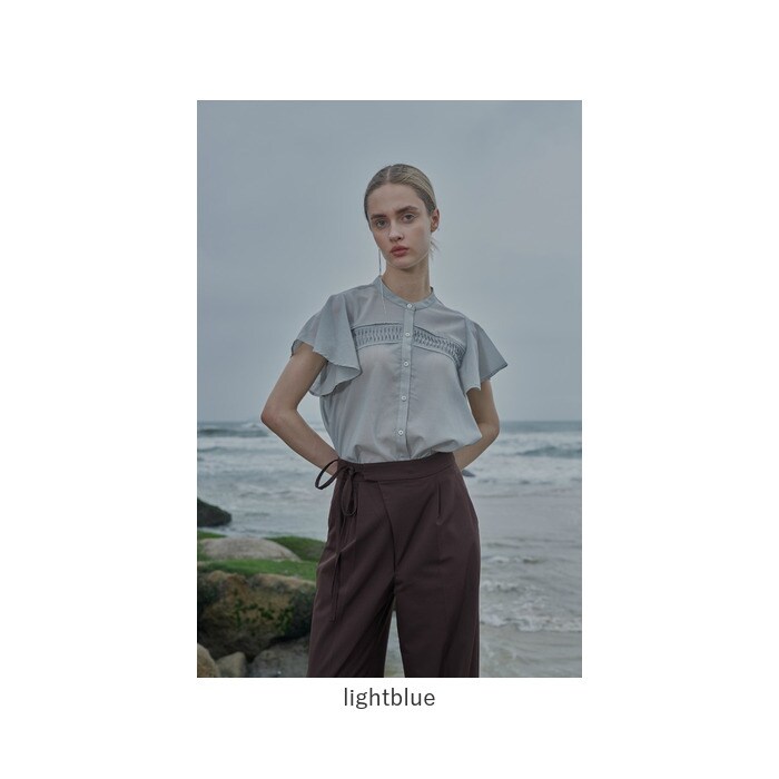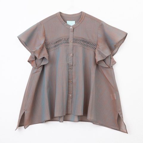 | 商品説明 | 【生地特徴】super120ウールとリサイクルポリエステルフィラメントを組み合わせた先染めシャンブレー。ウール特有の高級感のある風合いとポリエステルの安定性をブレンドしたハイブリッド素材。また、天然素材特有の大小様々なネップが素材の温かみとともに、素朴な味わいを感じられる。【デザイン】光の当たり方や角度次第で色の表情が変わるバンドカラーブラウス。シックな印象の中にフレアな袖口でフェミニン要素も兼ね備えており、芸術を感じるピンタックが個性を演出。ウールの上質感を持ちながら、ほんのりとリネンのようなシャンブレーの味わいによって気取らぬ風合いに。スカートとパンツスタイルで雰囲気が異なるので飽きない。 |