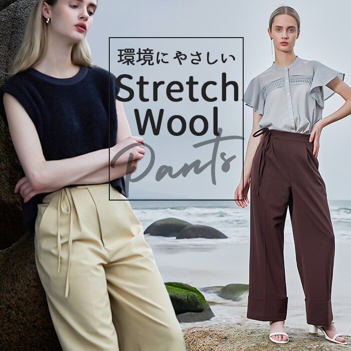 | 商品説明 | 【生地特徴】ファインウールに伸縮性のあるポリエステルをブレンドし、糸から研究開発し着心地の良い2wayストレッチ素材を作り。通常のポリウレタン混と異なり劣化しにくく、快適なストレッチ性が長く間保持できる。環境に優しいストレッチウール。梳毛の持つドライ感とハリのある風合いの良さはそのままに着心地をアップさせた新しい素材。【デザイン】きちんとしたハリ感のある見た目と、動きやすいストレッチ性を両立させたワイドパンツ。お腹周りにアクセントをプラス出来る紐付きで、スタイルアップ効果に期待が出来るセンタープレス入り。裾のロールアップデザインがこなれた雰囲気を漂わせ、穿くだけで明るい印象に。肉感を拾わないので自信のあるパンツスタイルを目指せる。 |