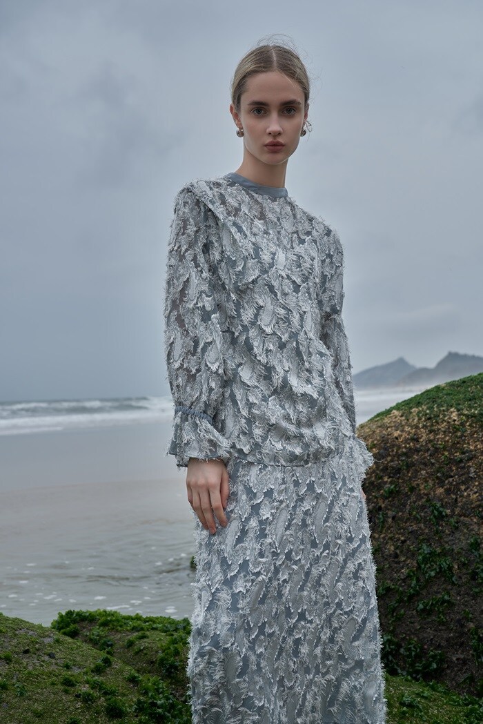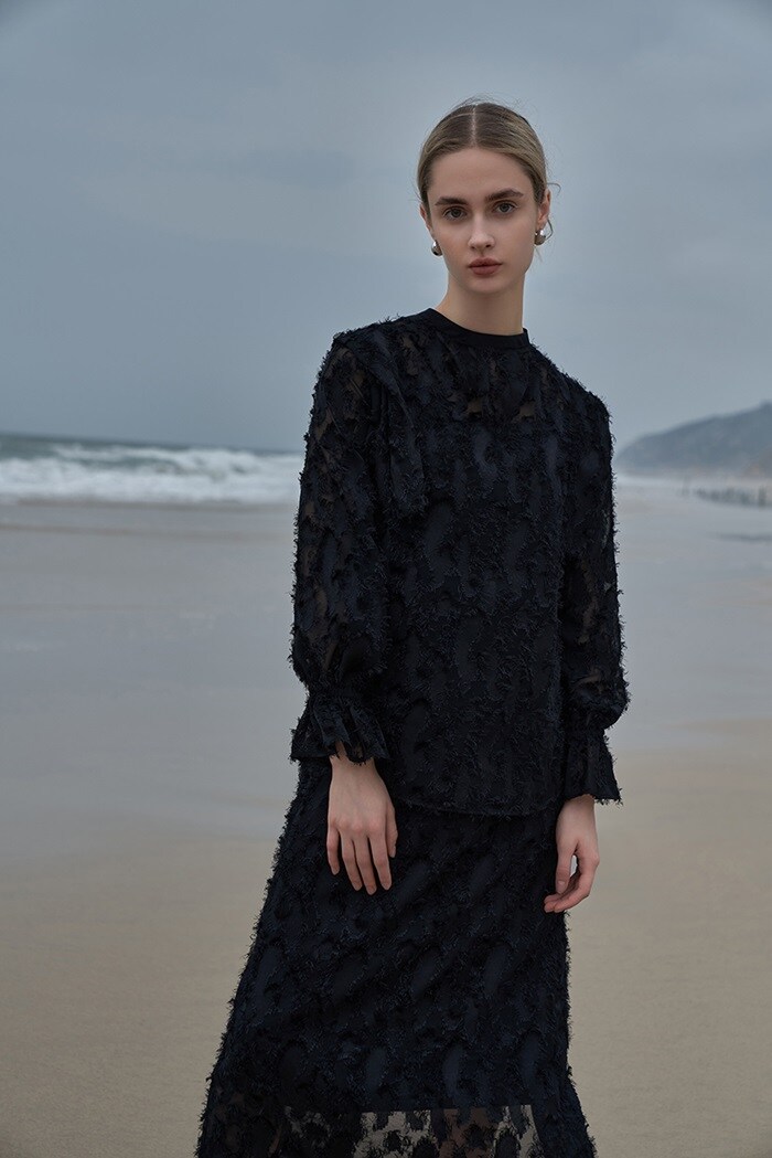 | 商品説明 | 【トップス】インパクトのある毛足の長いペイズリー柄のカットジャガード。光沢感もあり、華やかな印象を与え。【インナー】しなやかでソフトな風合いと優しい膨らみを持った、上質な新素材。優しい膨らみ感。パウダー調のまろやかなタッチ。優れた発色性。【デザイン】立体感のあるジャガードに目を惹く華やかさを加え、ドレス生地のように仕上げたペイズリー柄ブラウス。ふんわりとした優しいシルエットと袖が絞れたキャンディスリーブでメリハリを感じられ、軽やかさが漂う上品な肌見せ加減。光沢によって質感が高められ、さらりと心地良くきめ細やかな手触りで大人の女性らしい魅力が詰め込まれている。 |