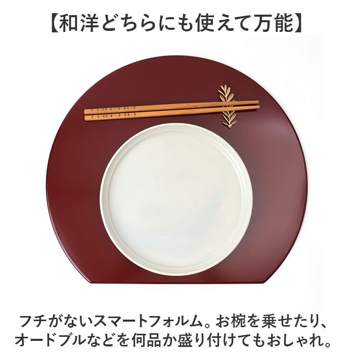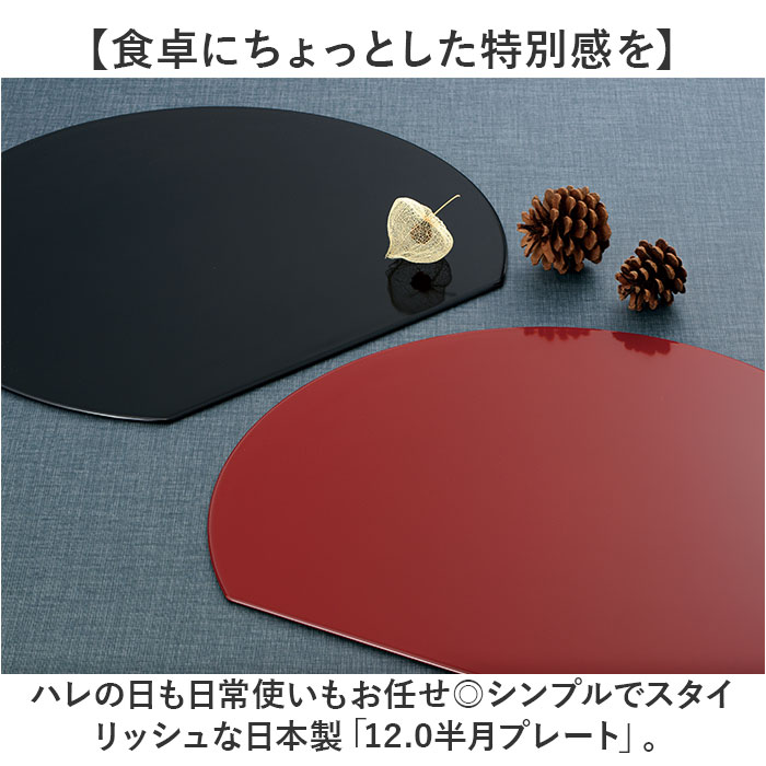 | 商品説明 | 【食卓にちょっとした特別感を】ハレの日も日常使いもお任せ◎シンプルでスタイリッシュな日本製「12.0半月プレート」。【色んなシーンにマッチするデザイン】落ち着きのある風合いが魅力。迎春用やハレの日のおもてなし、日常の食卓でも活躍。【和洋どちらにも使えて万能】フチがないスマートフォルム。お椀を乗せたり、オードブルなどを何品か盛り付けてもおしゃれ。【丸型よりも使いやすい半月型】丸型を一部カットしたような半月プレート。手前がまっすぐで、デッドスペースが生まれにくい!【表面塗装済みで毎日使いに最適】表面にはウレタン塗装を。汚れや傷がつきにくく、気軽に使えるのが嬉しい! |