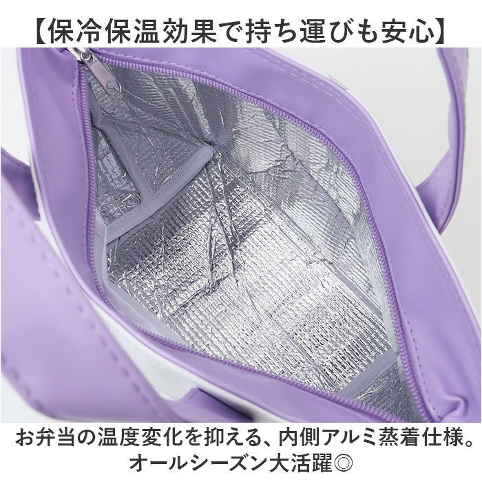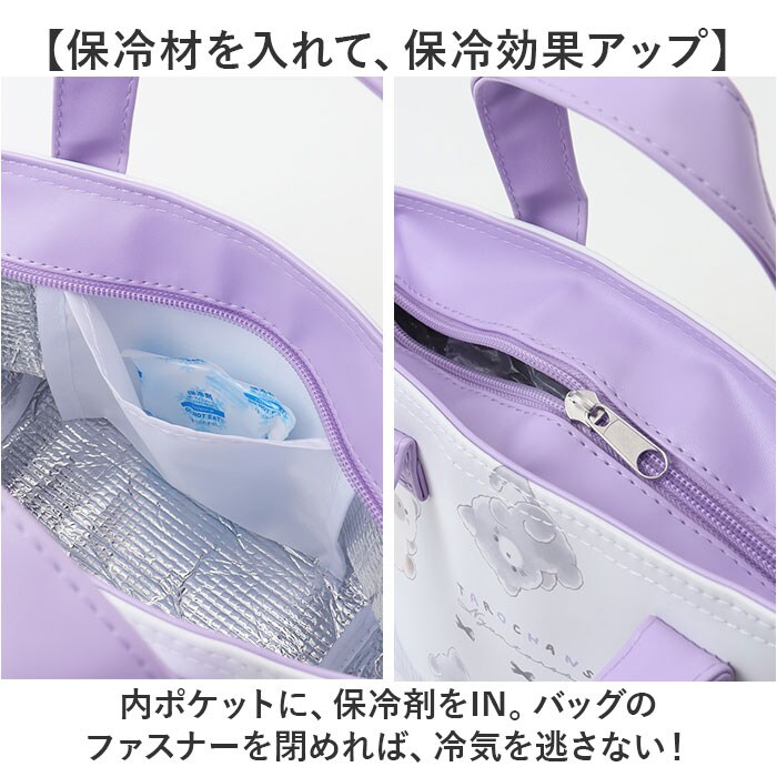 | 商品説明 | 【お弁当箱をすっきり持ち運び】ランチのお供にぴったり。可愛らしいキャラクターデザインの「保冷バッグ」。【サッと持ち出せて使い勝手抜群】手持ちしやすい持ち手付き。単体でも持ち歩きやすい、ランチトート。【開閉スムーズ、安心のファスナー式】ガバっと開いて取り出しやすく、ファスナーを閉じれば中身の飛び出しをガード。【保冷保温効果で持ち運びも安心】お弁当の温度変化を抑える、内側アルミ蒸着仕様。オールシーズン大活躍◎【保冷材を入れて、保冷効果アップ】内ポケットに、保冷剤をIN。バッグのファスナーを閉めれば、冷気を逃さない!【しっかり自立して安定感をキープ】中身を入れていない状態でも自立する、マチ広設計。お弁当箱が傾かず安心。【お気に入りグッズでランチを楽しく】気分を上げてくれる、人気キャラクターたち☆ランチの時間をもっと豊かに。【ポケット仕様】内側:オープンポケット×1 |
