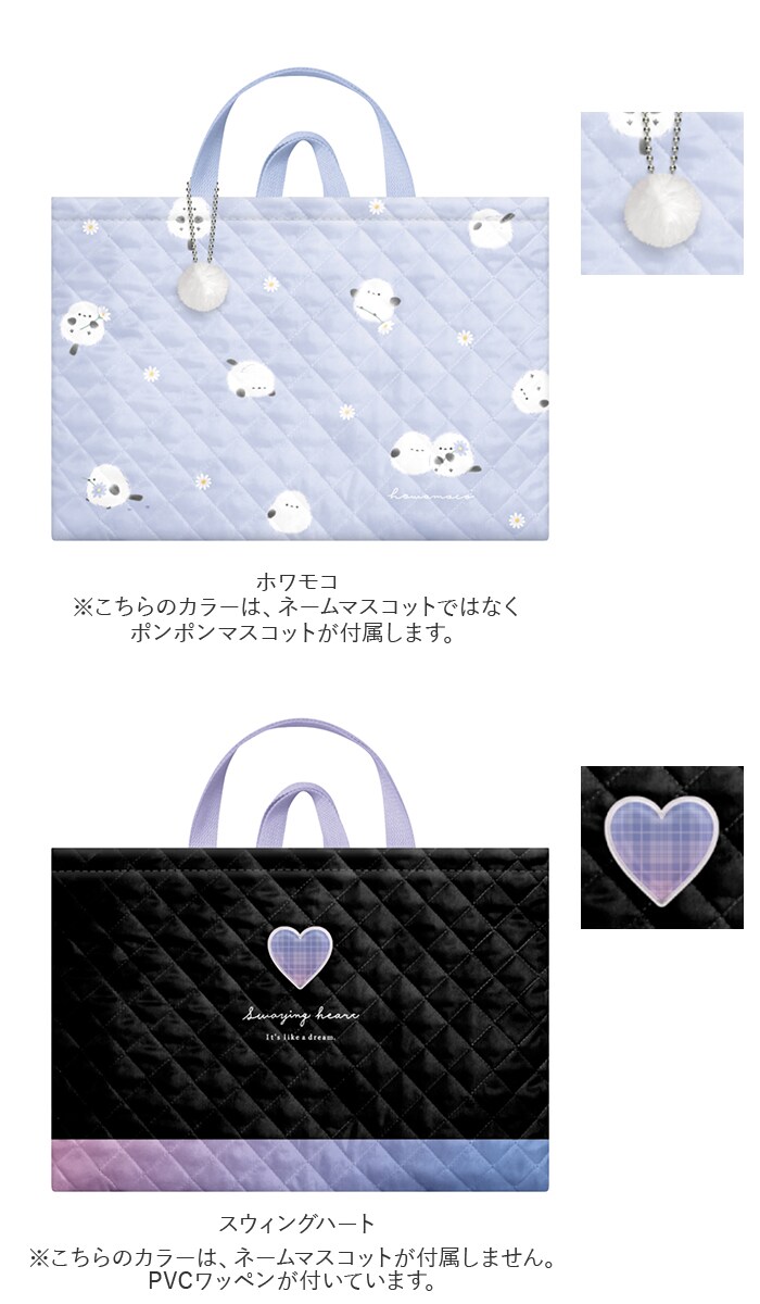 | 商品説明 | 習い事や通学のサブバッグとして活躍!キルトタイプの「おけいこバッグ」が登場。【軽い使い心地】ふんわり柔らかな、キルティング素材を使用。お子さまもサッと手も取れて、持ち歩きやすい軽量なつくり。【開閉がスムーズ】開口部は簡単に開閉できる面ファスナー式。ガバっと開いて出し入れしやすく、口を閉じれば中身のこぼれ落ちをガード◎【B4サイズ対応】B4サイズのファイルがぴったり収まるサイズ感。大きめの楽譜なども収納OK。小物を入れておける内ポケット付き。(※マチがないため、厚みのある楽譜などは収納できません。)【便利なネームラベル付き】内側ネームラベル&ボールチェーンで取り外し可能なネームマスコット付き。クラスと名前を記入できるから、お友達とお揃いでも大丈夫。【持ち手は短く設計】手持ちしやすい短めの持ち手。机の横に掛ける際、床につきにくいのも嬉しいポイント。【お手入れラクラク】汚れが気になったら、自宅で手洗いOK。いつも清潔をキープ。【入園・入学・新学期準備におすすめ】男の子も女の子も使えるデザインをラインナップ!お道具箱などもすっきり収納できるバッグを、新生活の準備アイテムにリストアップ☆【ポケット仕様】内側:オープンポケット×1 |