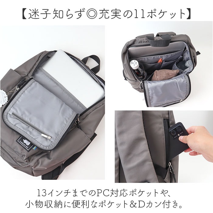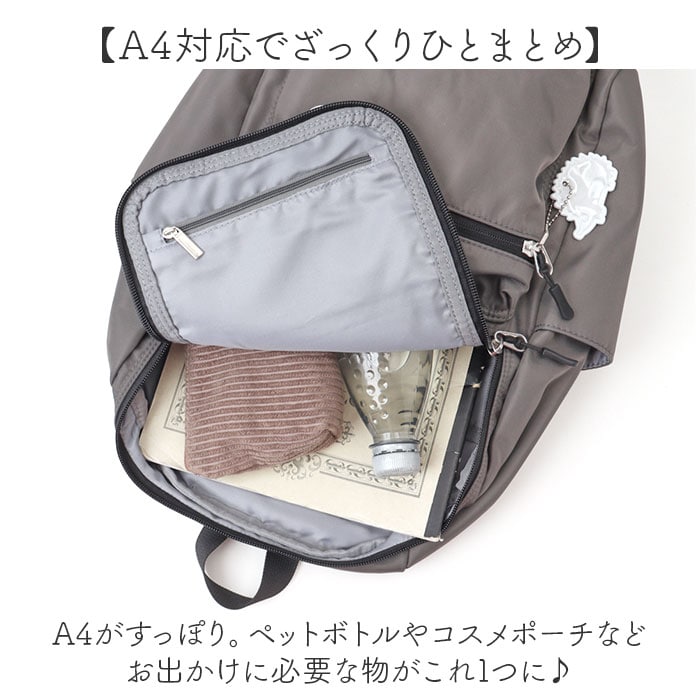 | 商品説明 | 【色んなシーンで頼りになる相棒】使い勝手が良くヘビロテ確定☆「SCANDINAVIAN FOREST 多機能リュック」。【愛らしいハリネズミがアイコン】北欧テイスト溢れる、スタイリッシュなプロダクトを展開。ハリネズミの姿にほっこり♪【デザイン性も実用性もばっちり】コロッと丸みのある可愛らしいフォルム&女性や子供が持ちやすいサイズ。ポケットも充実◎【ガバっと開くダブルファスナー】左右どちらからもオープン。中身を確認しやすく、出し入れスムーズ。【A4対応でざっくりひとまとめ】A4がすっぽり。ペットボトルやコスメポーチなどお出かけに必要な物がこれ1つに♪【安定感があり取り出しもラクラク】マチを広げると、荷物を入れていない状態でも自立。荷物の出し入れも手間取らない!【嬉しいメイン直結ファスナー付き】背面ファスナーを開くと、メインルームにクイックアクセス。背負ったまま小物を取り出し◎【迷子知らず◎充実の11ポケット】・13インチまでのPC対応ポケットや、小物収納に便利なポケット&Dカン付き。【軽やかでストレスのない背負い心地】背面とショルダーはクッション性があり、負担を軽減。ショルダーはムレにくいメッシュ仕様。【ワンタッチでスムーズに着脱】ショルダーはバックルをカチッと留めるだけ。抱っこ紐を付けたままでもサッと下ろせる◎【ちょっとの雨なら大丈夫】汚れや水滴を弾きやすい、撥水加工済み。お手入れも拭き取るだけ。(※)完全防水ではありません。【アクセントになるリフレクター】ハリネズミモチーフのリフレクターチャーム。暗闇でヘッドライトの光を反射、視認性をアップ。【コーデに馴染む落ち着いた仕上がり】大人カジュアルスタイルにマッチするデザイン。通勤通学用やマザーズバッグとして重宝。【ポケット仕様】内側:クッションポケット×1、オープンポケット×3、ファスナーポケット×1、ボトルポケット×2前面:ファスナーポケット×1サイド:オープンポケット×2背面:シークレットポケット×1 |