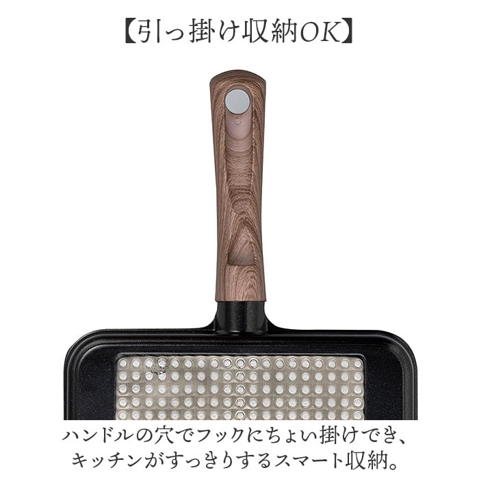 | 商品説明 | 【同時調理で忙しい朝に時短】バタつく朝もゆとりが生まれる「IH対応2品同時に作れるフライパンMC」が登場。【2つの料理を同時進行】程よい高さのある仕切り付きで、卵焼きとおかずを一度にラクラク調理!【熱がムラなく広がる】厚手のアルミ合金で食材を包み込むように火が通る均一加熱構造。【こびりつきにくい内面】ふっ素コーティング加工で食材がこびりつきにくく、汚れ落ちもスムーズ。【お手入れしやすい形状】ハンドルまで一体成形だから継ぎ目に汚れが溜まりにくく、清潔をキープ。【握りやすい木調ハンドル】滑りにくくしっかり握れて毎日の調理を支える、優しい持ち心地。【引っ掛け収納OK】ハンドルの穴でフックにちょい掛けでき、キッチンがすっきりするスマート収納。【幅広い熱源に対応】ガス・IHをはじめハロゲン、ラジエント、シーズ、エンクロ、6種の熱源で使えて使い勝手抜群【少量調理にぴったり】朝ごはんやお弁当作りにちょうど良いサイズ感で一人暮らしにも最適。 |