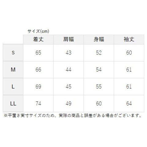 | 重量 | 約386g (※LLサイズの商品の重量を記載しています。) |